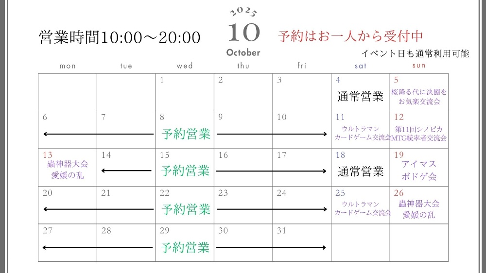 10:00~20:00 | ※ | ※ | ※ | ※ | ※ | ○ | ○ |